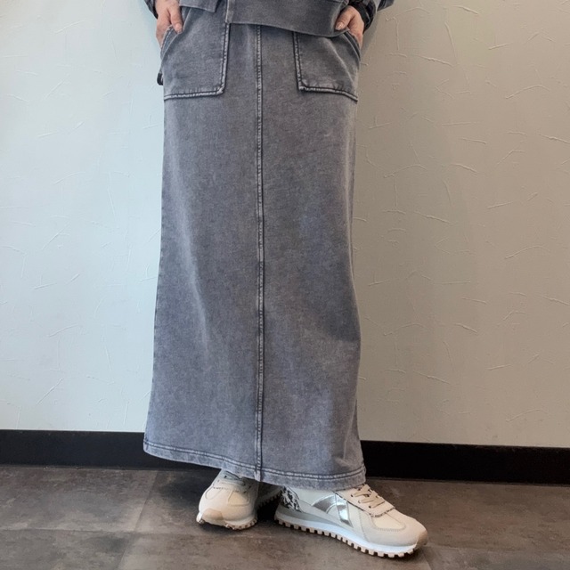 ウォッシュ加工タイトスカート。 素材 綿 100% サイズ ウエスト68〜88cm ヒップ90cm 着丈94cm