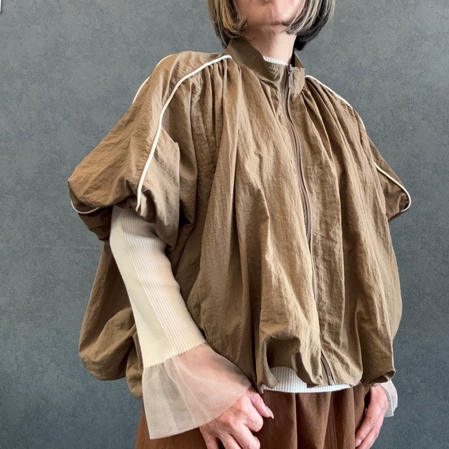 バルーンハーフスリーブブルゾン。 素材 ナイロン100% サイズ 着丈 56cm 袖丈 27cm 身幅 130cm